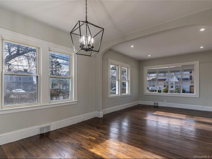 This stunningly renovated property offered a stylish living space with fresh paint, refinished hardwood flooring, and natural light from a large bay window in the main living area. The kitchen featured modern appliances, updated cabinets, and stunning quartz countertops, while the bedrooms and bathrooms were updated with new paint, flooring, and modern fixtures. Located on a corner lot with a spacious driveway and close proximity to the Stratford train station, this home provided convenience and a generous outdoor area for entertaining.